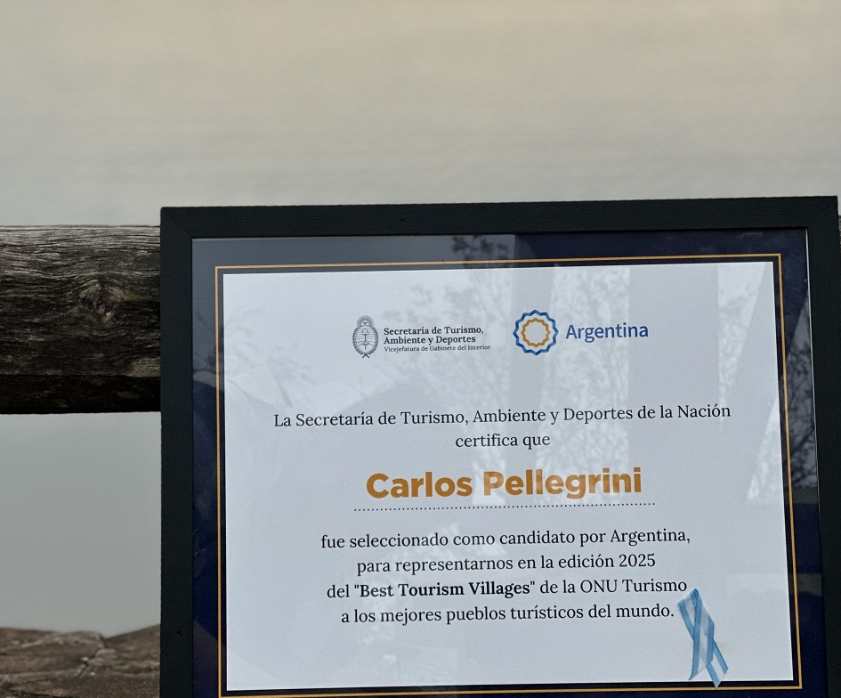 La entrega del certificado tuvo lugar este viernes 19 de septiembre en Carlos Pellegrini por parte de Rodrigo Báez, Asesor técnico en la Secretaría de Turismo, Ambiente y Deportes de la Nación y representante de ONU Turismo en Argentina; en tanto que en representación del Gobierno provincial lo hicieron la ministra de Turismo Alejandra Eliciri y la directora de Gestión Turística Mercedes Alegre y, por el municipio local su Intendente Juan de la Cruz Fraga, la viceintendente Diana Frette y la directora de Turismo María de los Ángeles Casares.